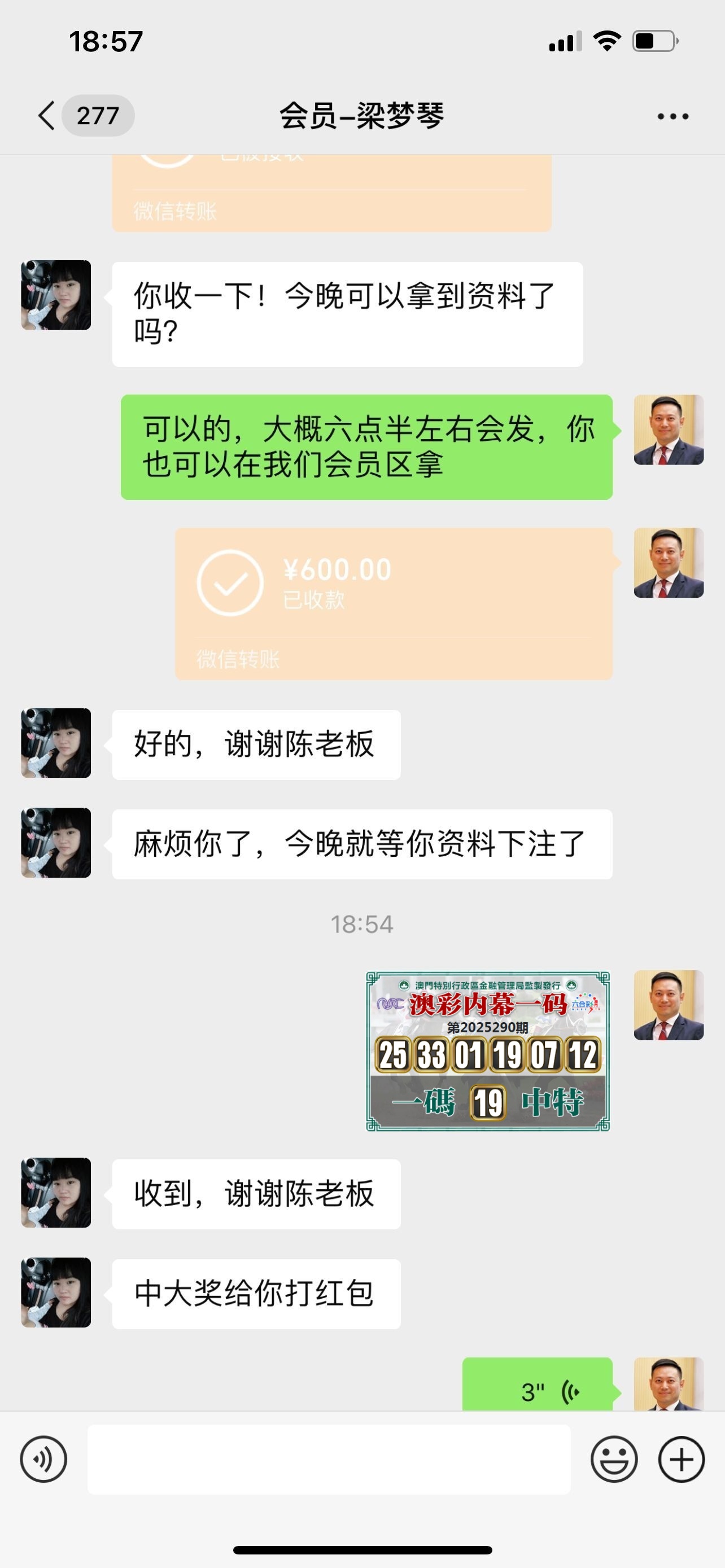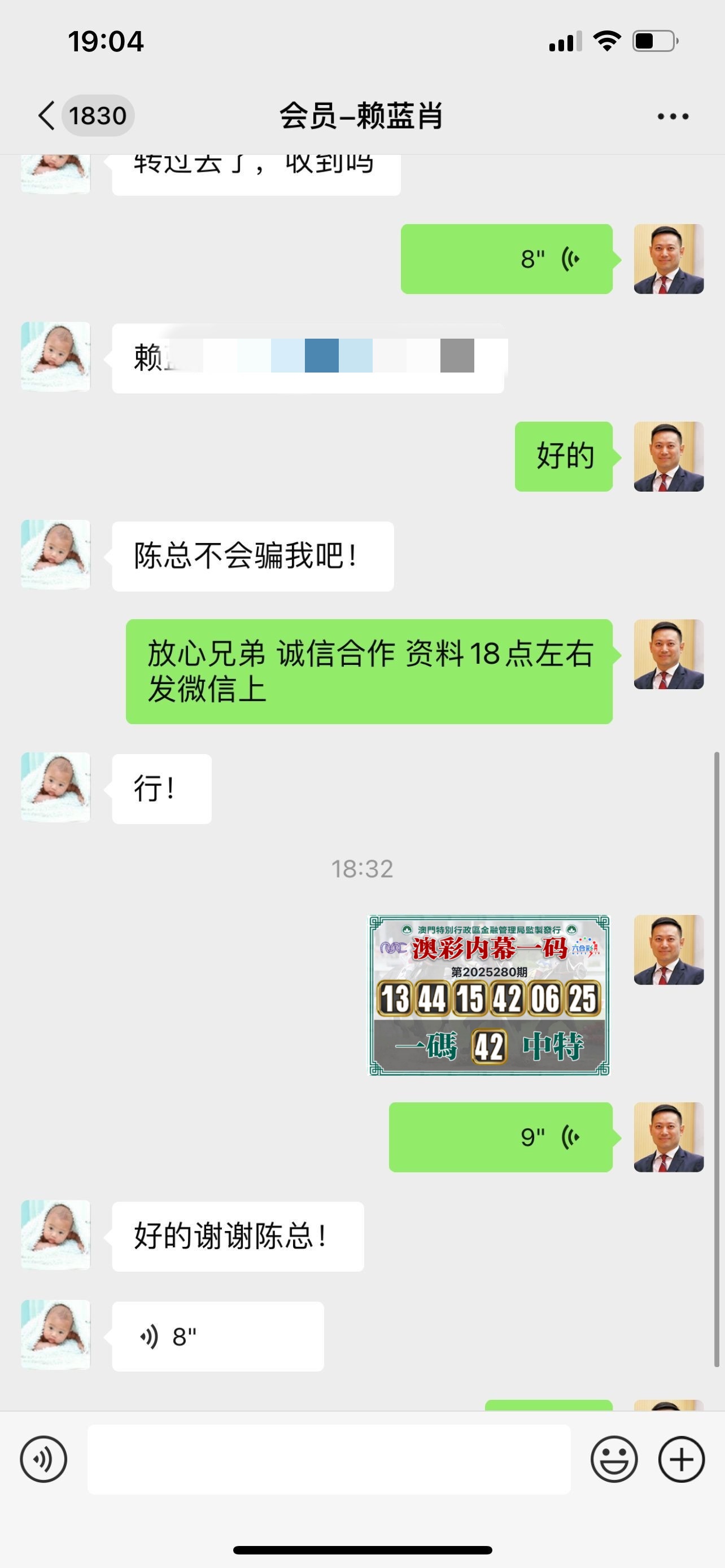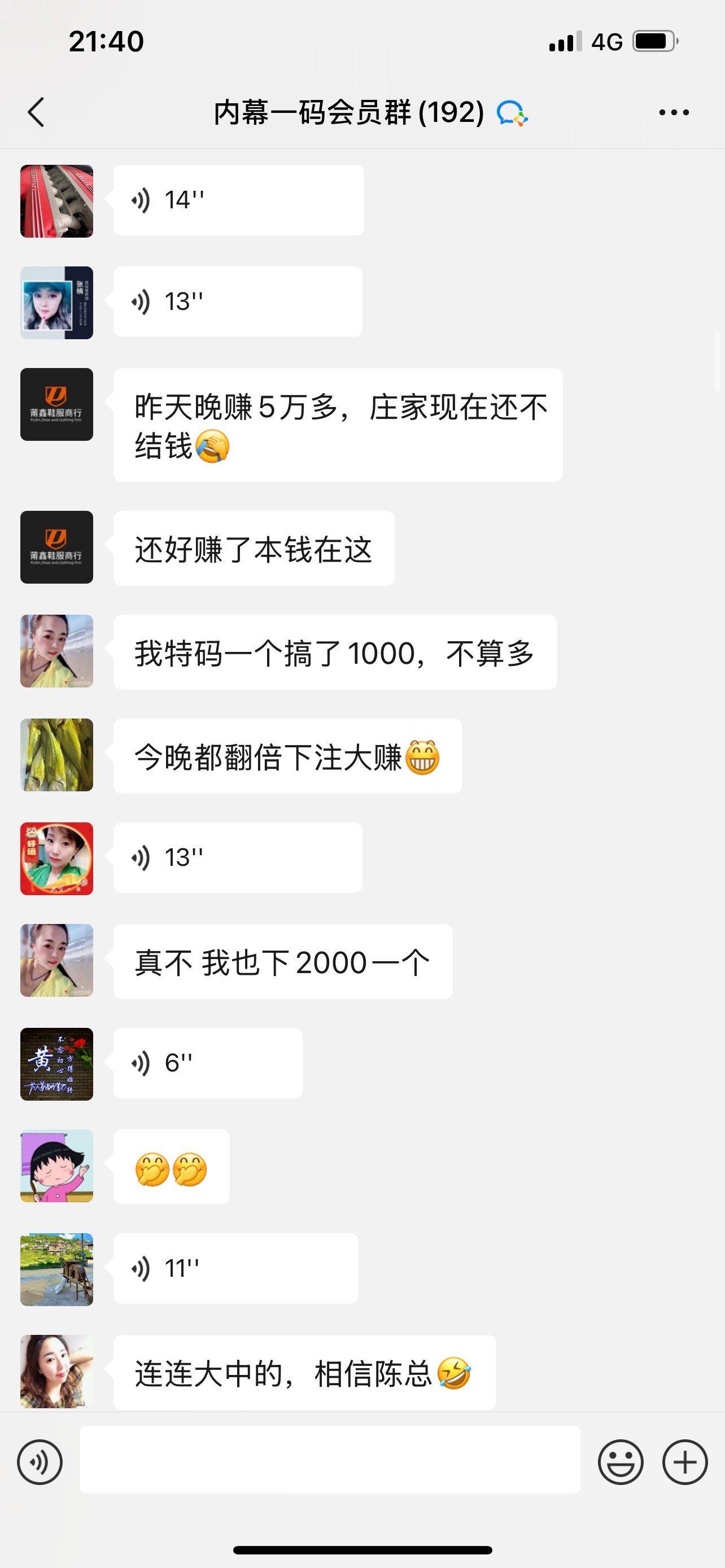 陈总你的资料太准了,昨晚中的钱刚从庄家那里拿回来,没找你之前输了十几万了,昨晚总算中回来一点了,以后就跟着你赚钱了。红包少不了你的,等我还清债务就发大红包感谢陈总!