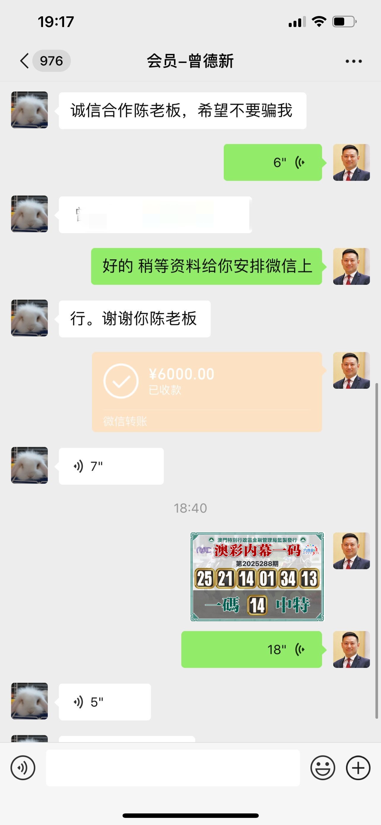 你好我叫杨良日,湖南人,这几年在家都是种植什么的,收成非常不好,连连都是亏本的。我就以为买点六合彩可以发一点小财,结果还越输越多。现在欠了好多债,种植业也搞不下去了。今天看到你陈总的资料,看了很久,资料更新及时,还非常准,我转了600元会员费到你微信上了,您查收一下。我相信你能让我早日摆脱困境,中奖我一定给你发一个大大红包,希望我们合作愉快!祝愿陈总,身体健康,心想事成!财源滚滚!
