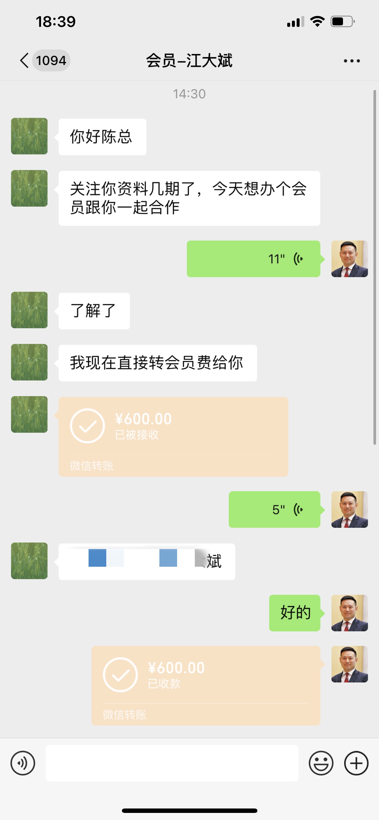 陈总听说你的资料很准?也不知道真不真,反正观察了一段时间了,目前看是很准的,然后我就忍不住入会了,600元会费已经转给你了,希望尽快帮我办理会员,迫不及待等着今晚下注啦。我们合作愉快啊